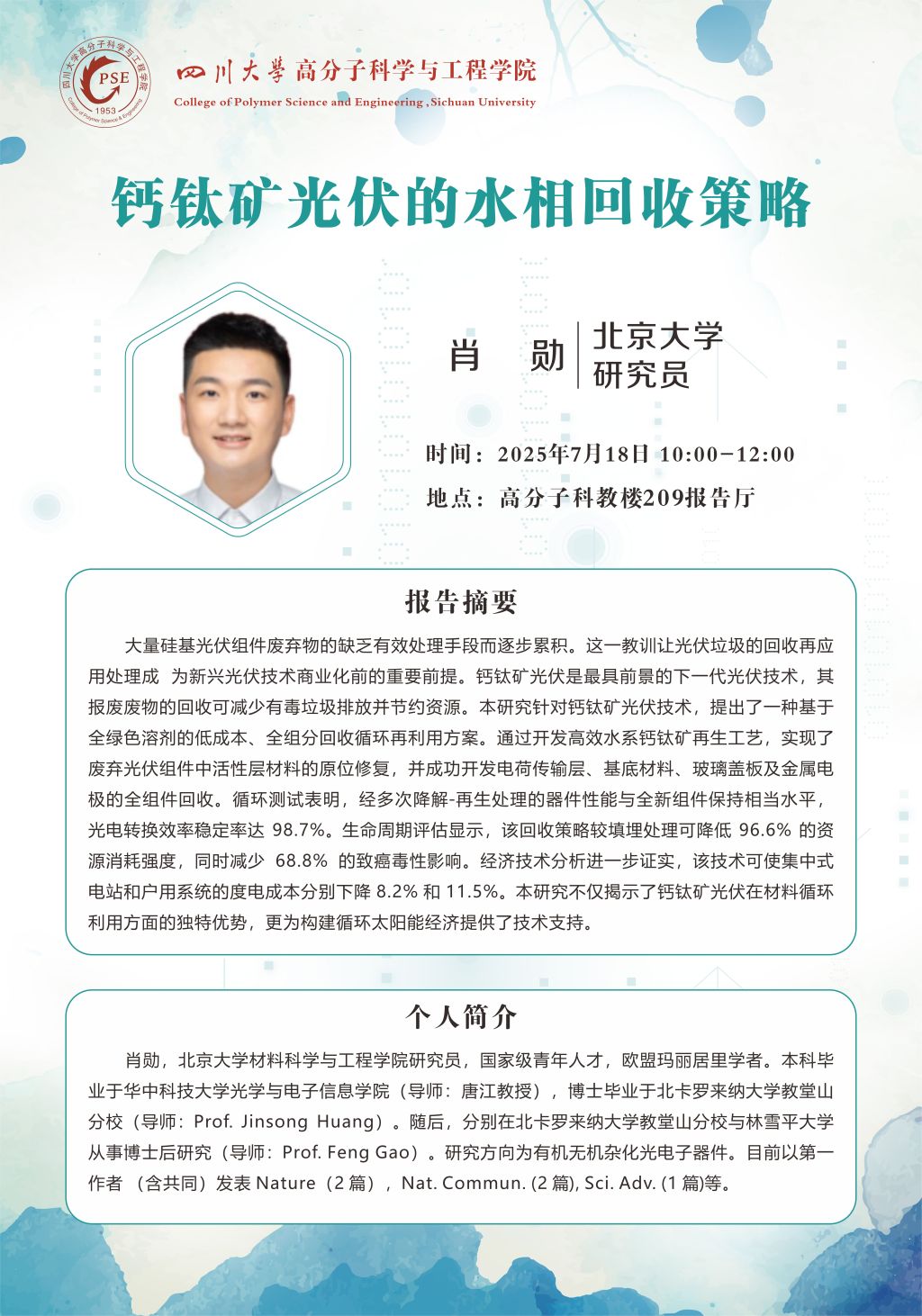 “战”一起,拼到底!公司篮球队在“川大杯”篮球赛中斩获佳绩! “战”一起,拼到底!公司篮球队在“川大杯”篮球赛中斩获佳绩! 川大高分子!欢迎报考! 川大高分子!欢迎报考! 百变高分子,等你来体验! 百变高分子,等你来体验! 虚位以待,诚邀海内外优秀人才加盟! 虚位以待,诚邀海内外优秀人才加盟!