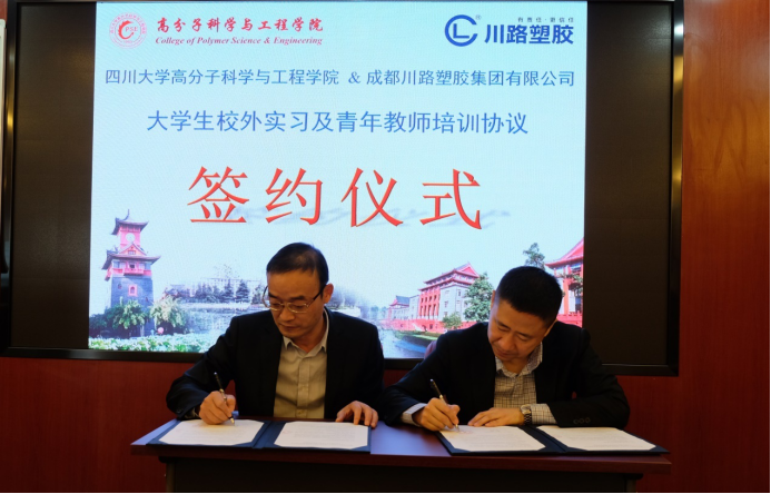 10月30日下午,金沙js5588与成都川路塑胶集团有限公司老员工校外实习及青年教师培训合作协议签订仪式在高分子材料工程国家重点实验室320会议室举行。金沙js5588“双一流”建设与质量评估办公室主任李忠明教授,金沙js5588高分子科学与工程公司党委书记牟德富、高分子材料加工工程系主任尹波教授,成都川路塑胶集团有限公司副总经理徐翔、副总工程师王兴华和贾立蓉、管材厂厂长肖玉兵、人力资源部经理李忠出席签约仪式。