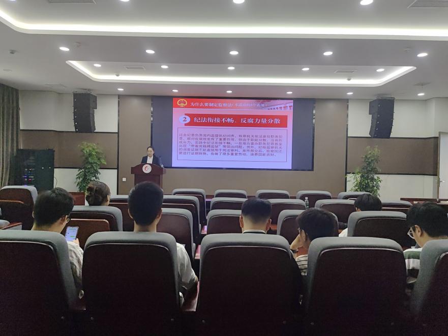 支部书记黄思维老师带领党员学习了《中华人民共和国监察法》,并进一步从以下三个部分展开讲述:为什么制定监察法、监察法明确了哪些内容、怎样贯彻实施监察法。黄思维老师表示,监察法是反腐败国家立法,是我们党依宪执政、依法治国的生动实践和鲜明写照。监察法的出台,补齐了原有行政监察范围过窄的短板,实现了对所有公职人员的监察全覆盖,使依规治党与依法治国、党内监督与国家监察相互促进、相得益彰,对推进国家治理体系和治理能力现代化,确保党和国家长治久安具有深远意义。