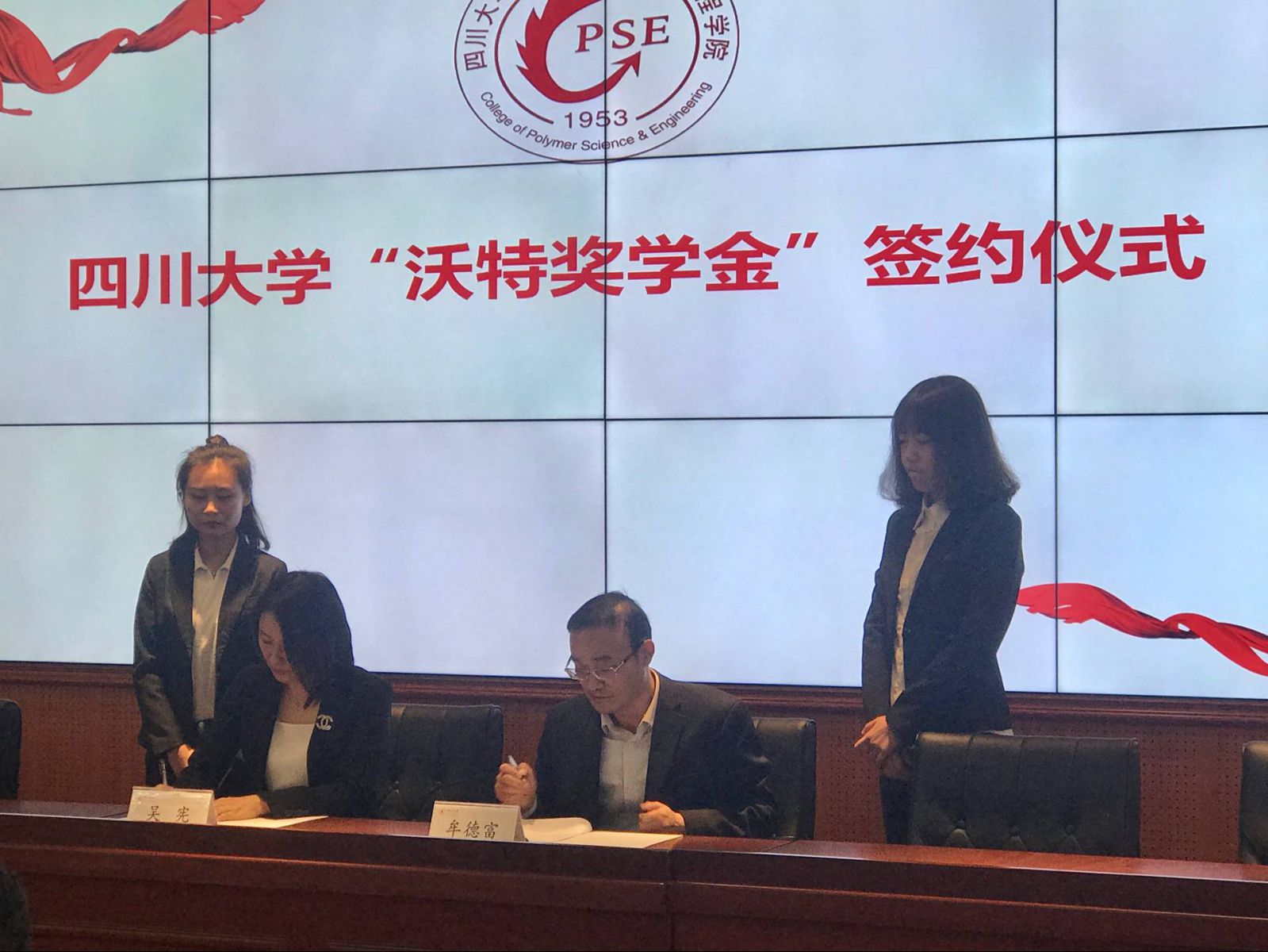 11月2日上午,金沙js5588“沃特奖学金”颁奖仪式在金沙js5588研究生院二区-101隆重举行。深圳市沃特新材料股份有限公司董事长吴宪、深圳市沃特新材料股份有限公司CEO何征、深圳市沃特新材料股份有限公司董事会秘书张亮、深圳市沃特新材料股份有限公司CHO首席人力资源官李言典、金沙js5588高分子科学与工程公司党委书记牟德富、金沙js5588高分子科学与工程公司党委副书记钱祉祺、金沙js5588副经理杨伟、金沙js5588系主任刘向阳以及学院师生参加了本次颁奖典礼。