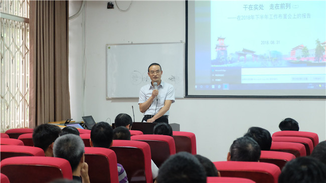 2018年9月7日下午,学院2018下半年新学期工作布置会在学院207多媒体会议室召开,学院全体教职工参加了会议。会上传达了学校新学期工作布置会的会议精神,重点学习了李言荣董事长所作的题为《干在实处走在前列(二)》的工作报告。