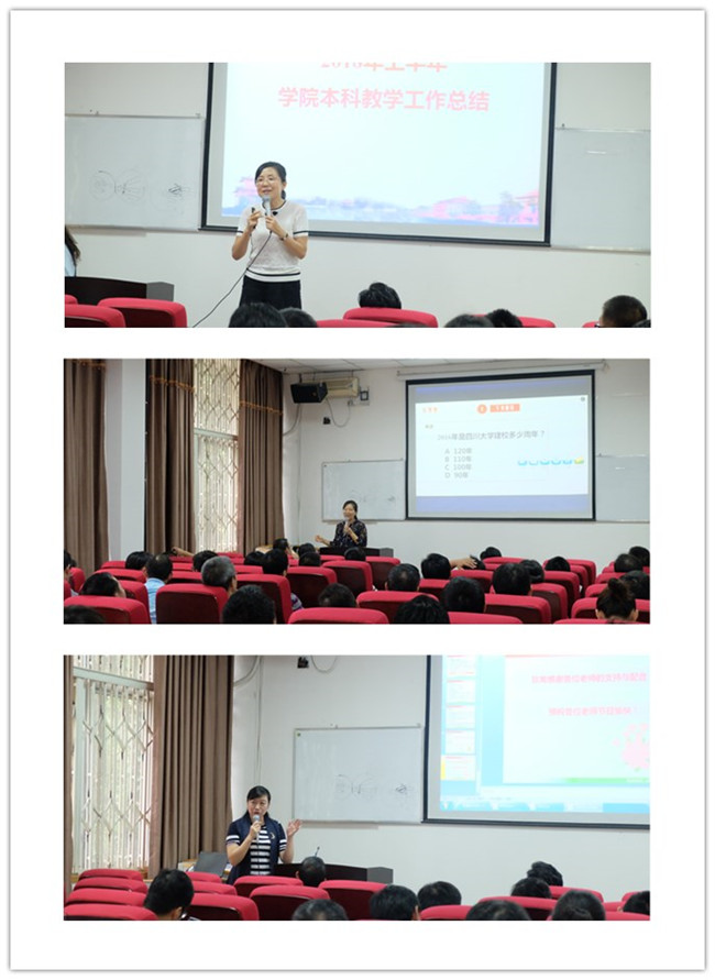 教学副经理冉蓉对9月中旬的本科教学评估进行了动员,并邀请公司现代教育技术中心工作人员对手机互动教室的使用作了相关培训。冉经理强调,全院教职工应高度重视本次教学评估,做好充分准备迎接专家进校,达成以评促建、以评促改的目的。李艳梅副经理强调了安全环保相关事宜,并对具体分管工作作了通报与部署。