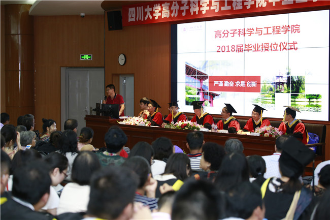 公司教授委员会主任杨鸣波教授、经理傅强教授、学校“双一流”建设与质量评估办公室主任李忠明教授、公司党委书记牟德富教授、副经理杨伟教授、学院教授委员会副主任徐建军教授、高分子材料与工程国家重点实验室副主任夏和生教授、高分子材料系主任刘向阳教授、高分子材料系支部书记陈枫教授、医用高分子材料系主任李建树教授、高分子材料加工工程系主任尹波教授、学院专业实验室主任秦家强教授、医用高分子材料系谭鸿教授、高分子材料系邓华教授、高分子材料加工工程系严正教授出席了授位仪式。学院2018届毕业生、毕业生家长代表和学院辅导员老师参加了授位仪式。授位仪式由公司党委副书记、纪委书记钱祉祺主持。