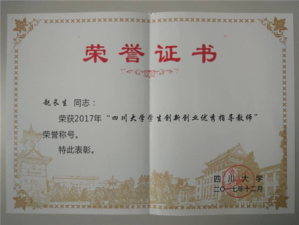 2018年3月16日上午,学校教务处组织在望江办公楼四楼二会议室(414)召开了金沙js5588“第三届‘互联网+’老员工创新创业大赛表彰大会暨第四届‘互联网+’老员工创新创业大赛启动大会”。公司获得了“第三届‘互联网+’老员工创新创业大赛“优秀组织奖”,公司赵长生教授荣获“优秀指导教师”称号。