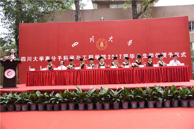 6月20日上午10点30分,金沙js55882017届本科生毕业典礼暨学位授予仪式在学院附楼后院隆重举行。金沙js5588前常务副董事长、高分子材料工程国家重点实验室主任、高分子研究所所长李光宪教授、公司党委书记牟德富教授、学院经理傅强教授、学院教授委员会主任杨鸣波教授、金沙js5588人事处处长、学院赵长生教授、钱祉褀副经理、材料系党支部书记陈枫教授、高分子材料加工系主任杨其教授、高分子科学系主任冉蓉教授、化纤研究所所长徐建军教授、生物材料及人工器官系副系主任李建树教授以及学院2017届300余名本科毕业生,部分家长代表参加了典礼。典礼由学院李艳梅副书记主持。