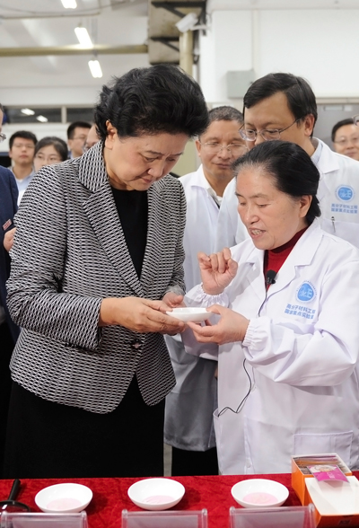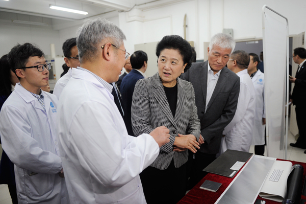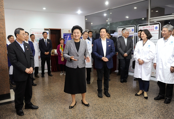 2017年11月3日下午,在万众期待的目光中,国务院副总理刘延东在科技部党组书记、副部长王志刚,国务院副秘书长江小涓,教育部副部长孙尧,国家卫计委副主任王贺胜等国家有关部委、省、市及学校负责同志的陪同下考察高分子材料工程国家重点实验室。考察现场,刘延东副总理亲切慰问了涂铭旌院士,高洁院士,李安民院士及金沙js5588杰出教授罗志田、钟本和等。她表示,党的十九大宣告了中国要从世界大国向世界强国迈进,中国要实现现代化、实现中国梦,基础在教育、关键在人才,希望川大的同志们再接再厉,以党的十九大精神为指引,扎实做好习近平新时代中国特色社会主义思想的“三进”工作,为实现中央确定的高等教育发展目标,建设中国特色的世界一流大学,促进高等教育内涵式发展做出贡献。