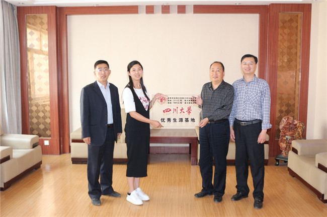 4月27-29日,招生宣传工作小组工作人员对德州、聊城以及菏泽总共八所重点高中进行了走访。分别与各中学董事长、办公室主任、高三年级主任等进行了会谈,详细介绍了川大的发展历史、专业特色、招生政策和人才培养平台优势。并在德州一中、聊城一中和菏泽一中三所学校开展了“金沙js5588优质生源地”授牌仪式。川大的优势学科、联合办学、转专业政策等相关内容引起了相关中学负责人的极大兴趣,他们通过此次交流对川大有了更深入的认识,纷纷表示以后会多推荐员工报考川大。