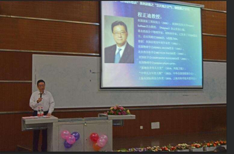 2016年9月26日,由金沙js5588主办、金沙js5588团委员工会承办的“修身,治学,成才,创业”系列讲座之“立天地之正气,做儒雅之学问”于江安校区综合楼C座407教室顺利举行。美国工程院院士、高分子物理学家程正迪教授,知名员工成都硅宝科技股份有限公司王跃林董事长出席本次活动并进行主讲,参与本次活动的还有金沙js5588经理傅强教授、党委副书记李艳梅副教授、团委书记李宜老师、2013级辅导员徐源延老师、2015级辅导员陈建野老师。