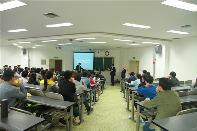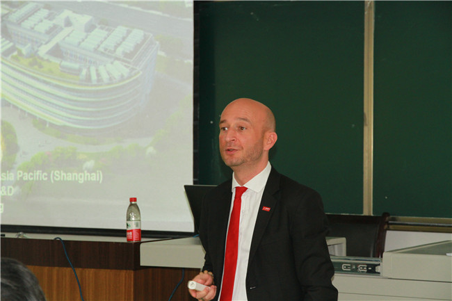 Dr. Lauke对巴斯夫的起源以及初期的发展做了详细介绍。他作为亚太区的代表,见证了中国在近年来取得的长足进步,巴斯夫作为全球化工企业龙头,在上海建立了亚太区的研究中心。他强调在未来几年,巴斯夫会在亚太区更多的地方建立的研究中心,与亚太区顶尖高校进行紧密的合作,并指出这种合作是一种双边互赢、互惠互利的长期合作关系。副总裁Dr. Winterling作为研发人员出身,以自己的亲身经历阐述了科研创新对于企业的重要性。他以门捷列夫发现的元素周期规律为出发点,说明了创新不仅仅是新事物的创造,也是对现有事物的归纳总结,能为新事物的发现和发展提供简洁有效的研究方法。他鼓励在校员工要时刻保持对所学专业的热情态度,勇于打破常规,提出自己的见解,具备创新头脑和思想,才能在自己的领域做出成就。最后巴斯夫负责企业-高校项目合作的高级经理Dr. Garnier重点结合巴斯夫在亚太区为促进企业-高校深度交流合作而做出的努力进行了介绍,他指出巴斯夫目前在亚太区依托公司建立了先进材料开放研究网络平台,鼓励高校博士以及博后人员加入这个平台,在平台的支持和资助下把自己的所学充分发挥出来,从而加强企业-高校交流合作关系,也能帮助即将毕业的员工提前了解企业研究和高校研究之间的异同,对自己的未来做出长远的规划。
