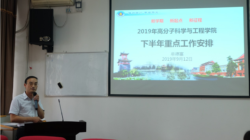 为传达和部署新学期重点工作,深入推进课程思政建设,9月12日下午,学院2019下半年工作布置会在207多媒体会议室召开,学院全体教职工参加了会议。会议由公司党委书记牟德富主持。