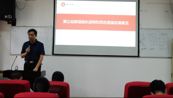 邰明松同志代表巡察组提出四点意见建议。一是要进一步提高政治站位,深入学习贯彻习近平新时代中国特色社会主义思想,推动“四个意识”“四个自信”和“两个维护”的知行合一,切实做好党的建设与事业发展两手抓、两手硬。二是要把全面从严治党主体责任落细落实落规范,领导班子成员要进一步强化“一岗双责”意识。三是要高度重视巡察反馈意见,针对指出的问题,要认真研究分析,高标准严要求处理,确保巡察反馈问题整改到位。四是要厘清团队建设逻辑、现状、问题、举措、目标,在学科方向凝练、高水平团队建设、体制机制改革、团队建设保障等方面集中发力,坚定决心在学校率先建成世界“一流”学科。