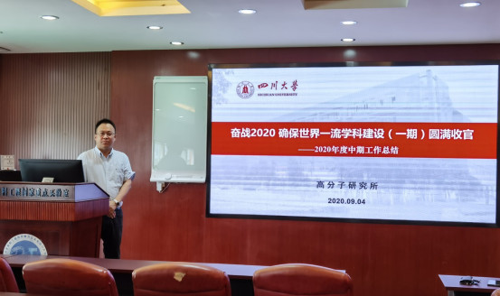 冯玉军副所长代表高分子研究所作工作报告。他总结了2020年研究所的科技工作概况,对比了2018-2020年“双一流”建设目标任务和2020年目标任务及重要指标的完成情况,分析了2020年高研所发展面临的新形势及科研核心指标,并对学校新学期工作布置会内容及政策进行了详细解读,希望全体教职工在重视实验室安全环保工作的同时继续奋战2020年,推动高研所的进一步发展,助力世界一流团队建设(一期)圆满收官。
