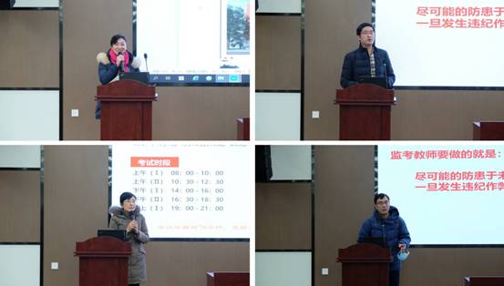 党委副书记钱祉祺、副经理李艳梅、冉蓉、杨伟就各自分管领域的工作进行了相关汇报和部署。钱祉祺副书记强调了员工放假及返校安排。李艳梅副经理介绍了科教楼建设情况、学院学科文化建设、安全工作情况以及养老保险补缴情况。冉蓉副经理汇报了教学方面工作开展情况及取得的成绩,并重点传达了学校监考安排及要求。杨伟副经理向教师们强调了基金申报事项。