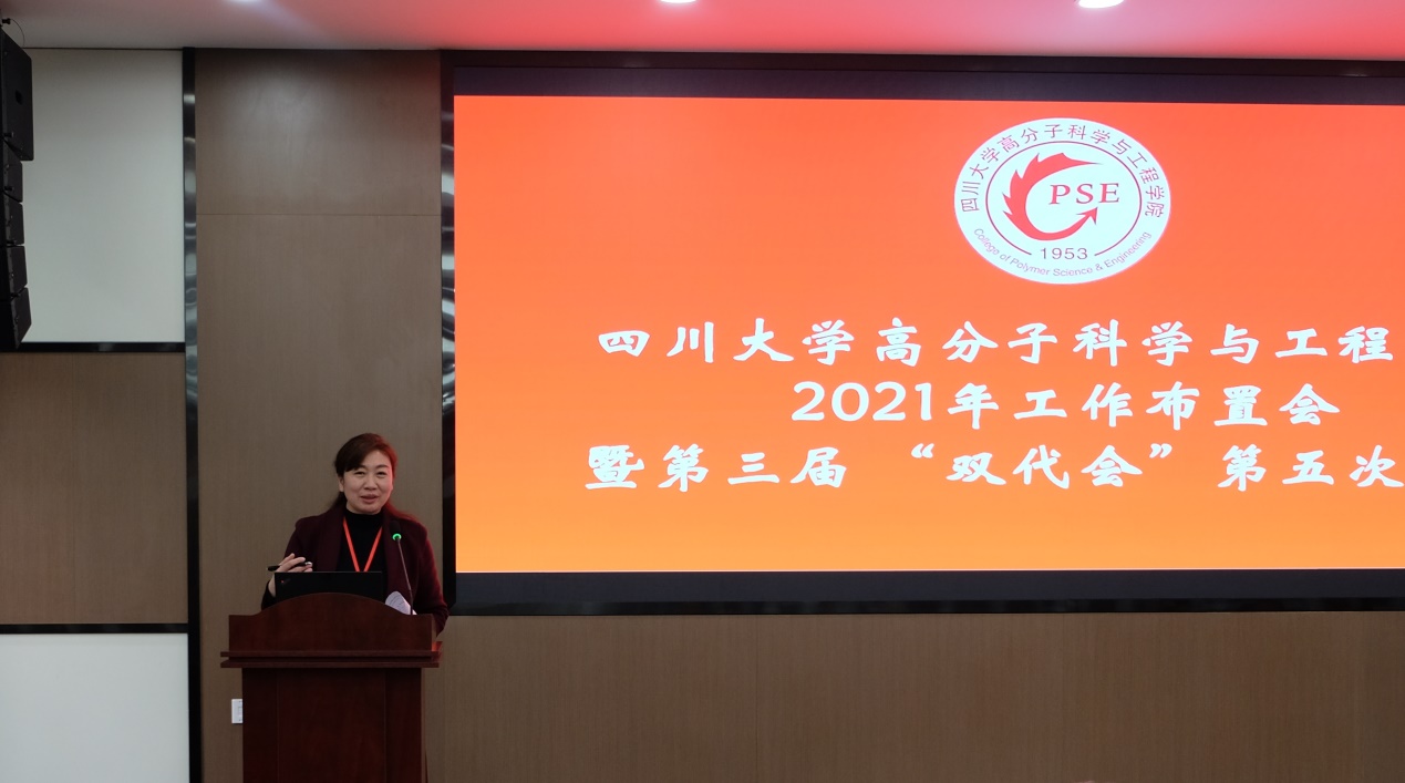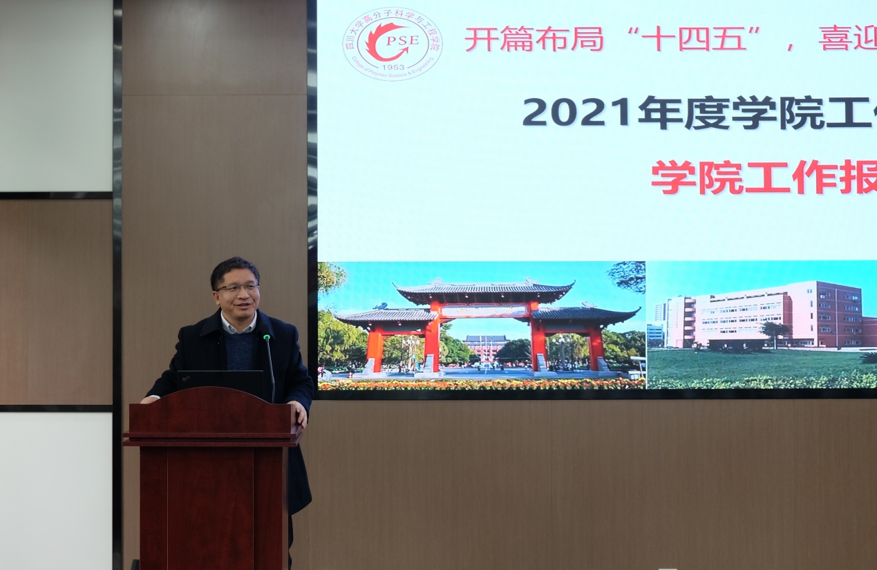 会上,党委书记牟德富详细传达了学校2020年工作总结、2021年重点工作以及学校“十四五”规划说明。他强调,2020年度学院各方面工作都取得了一定的成绩,呈现很好的势头,离不开全院教职工的付出与贡献,但是也存在着问题和短板。我们要把握学校“十四五”规划和2035先导计划等机会,探索学院下一步发展思路,紧抓一流内涵和核心指标,凝心聚力,奋勇向前,开拓创新,续写高分子学科发展新篇章。