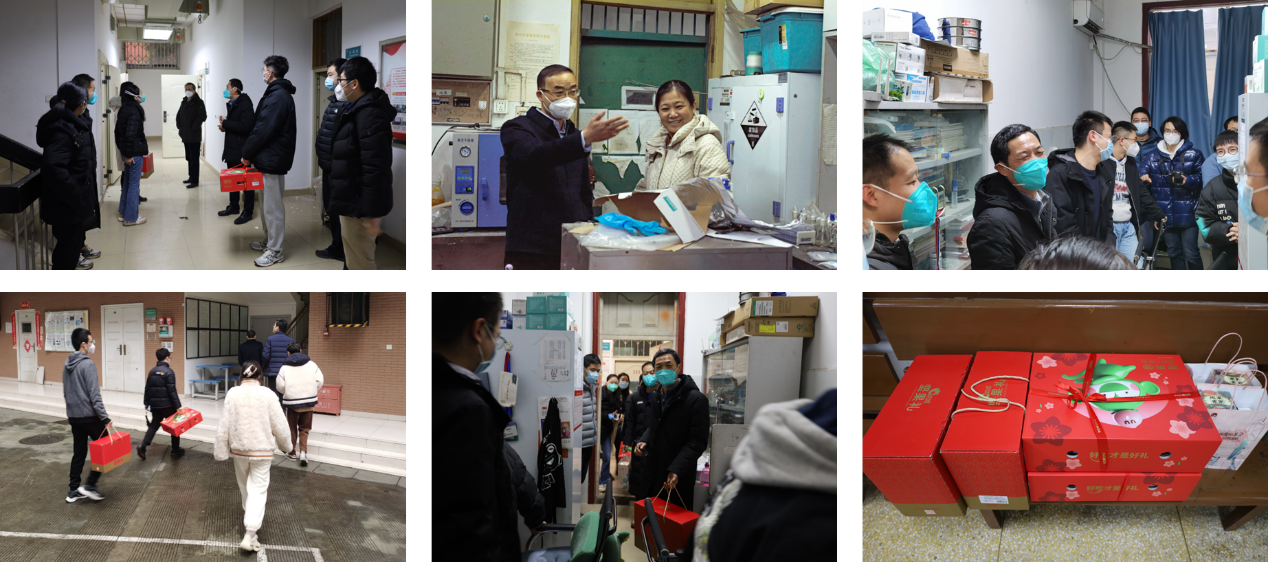 公司领导一行先后来到学院科教楼、实验楼、西区第四教学楼、逸夫楼等地点的课题组和实验室,与师生亲切交流,仔细了解了大家工作生活中遇到的问题,详细询问大家的学习、生活状况,并送去精心准备的慰问大礼包和新春祝福,叮嘱在校的教职工、同学们要积极做好个人健康防护,注意劳逸结合,潜心科研,开拓创新。