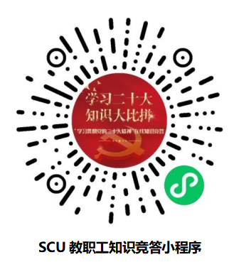 为进一步激发全校教职工认真领悟会议精神的学习热情,营造“以赛促学、以学促思、以学促行”的良好氛围,党委教师工作部于2022年11月3日至11月10日组织开展线上“学习二十大 知识大比拼——‘学习贯彻党的二十大精神’知识竞答”活动,教职工可通过“川大人事人才”公众号链接进入答题,或扫描小程序二维码参加活动。