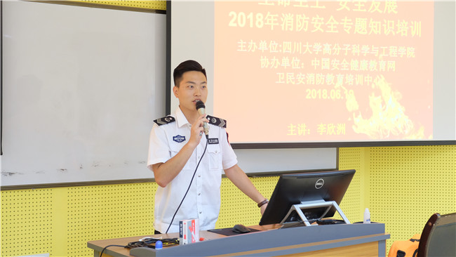 为增强学院师生的消防安全意识,普及消防知识,提高消除安全隐患、应对火灾等突发事件的整体能力,2018年6月19日,公司邀请卫民安消防服务中心李仙洲教官为全体教职工和2017级研究生分别举办了两场消防安全讲座。公司党委书记牟德富、分管安保工作的副经理李艳梅、实验室安保工作领导小组成员及300余名师生参加了此次讲座。
