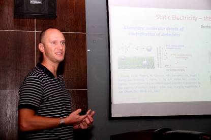 Simone Ciampi教授主要从事半导体电化学、静电催化、电化学显微镜以及绿色化学等领域的研究。报告中,Simone Ciampi教授表示反应物转变为产物常常伴随着电子的重组,而这种重组所导致的电荷分离意味着分子和过渡态有可能与电场发生相互作用。然而静电对非氧化还原化学反应催化作用的影响却知之甚少。Simone Ciampi教授团队首次证明了静电力作用在1)C-C共价键形成的速率;2)自由基活性;3)C-O共价键的断裂速率等反应中的影响,提供了利用外部电场控制化学反应活性和选择性的新方法。张龙博士作为Simone Ciampi教授的第一个博士研究生,分享了其研究经历,并进一步阐释了电化学在高分子领域中应用。