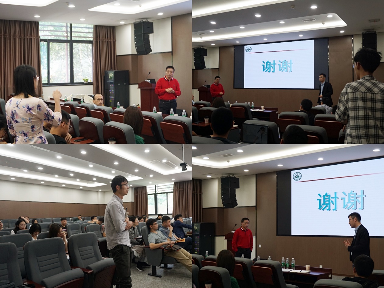 精彩的报告引得老师和同学们争先提问,戴教授也耐心地为老师和同学们答疑解惑。陈教授也向戴教授请教要如何才能把水凝胶粘/脱粘的科学原理应用到自己所涉及的领域中,两位教授和现场老师们也就此展开了一番激烈的探讨,彼此交流促进思维的碰撞,撞击的火花让在场的每一位老师同学都深受鼓舞!