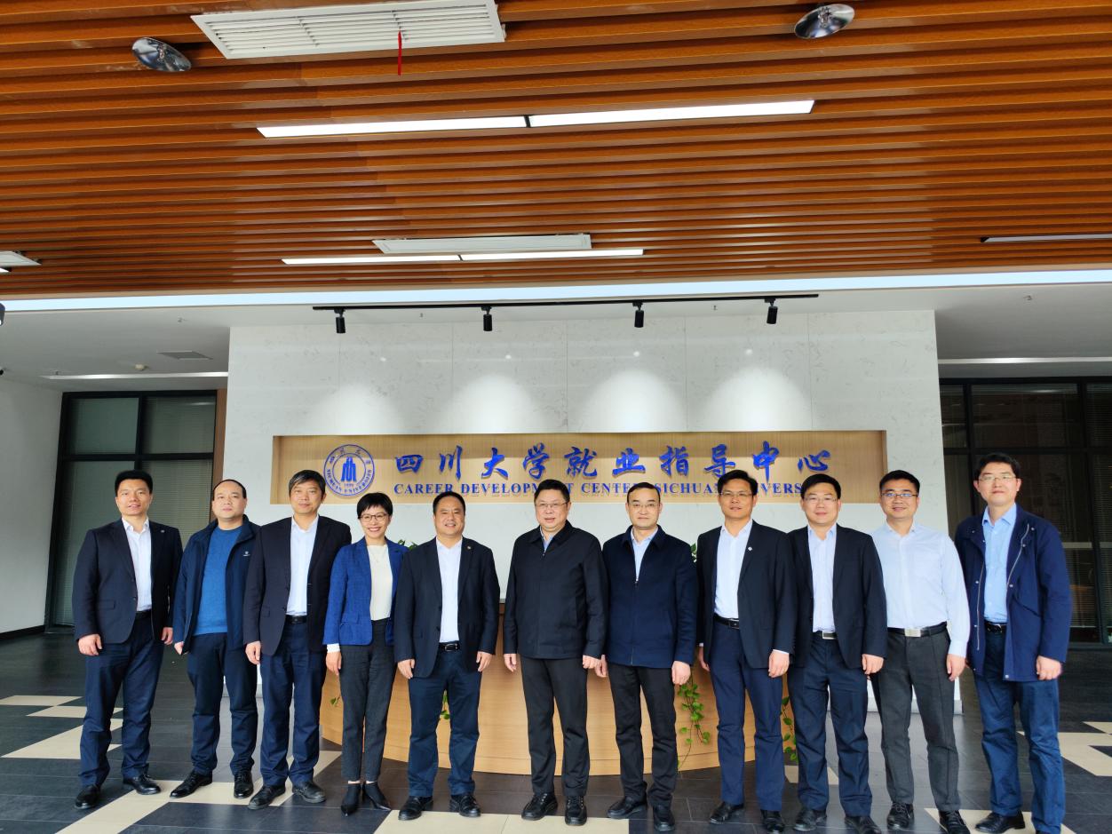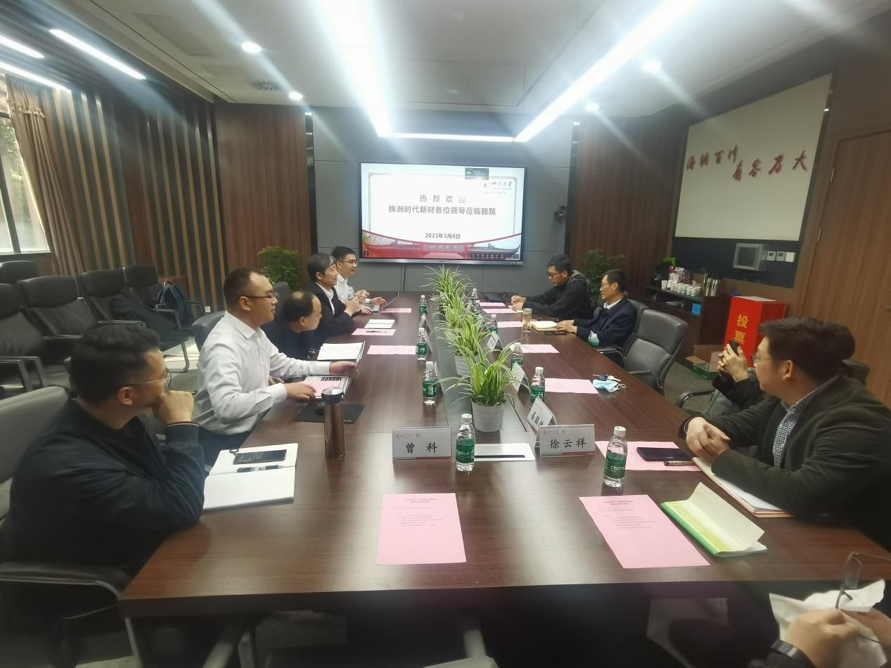 2023年3月8日,中车时代新材料科技股份有限公司董事长彭华文、副总经理兼总工程师程海涛、副总经理彭超义及公司党委副书记李华伟等一行到校开展合作交流和校园招聘等活动。公司党委副书记郭勇与来访嘉宾进行了座谈,学校就业指导中心主任刘若冰、校人才办主任兼人事处副处长杨伟、高分子科学与工程公司党委书记牟德富及化学学院、机械工程学院等相关单位负责同志参加了交流。