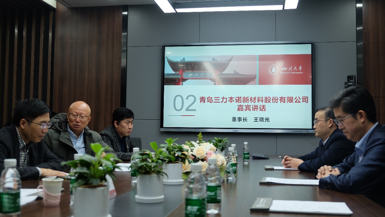 王晓光董事长介绍了青岛三力本诺新材料股份有限公司多年来捐赠设立奖学金的初衷,他表示,目前我国高端材料如特种耐温尼龙等仍大量依赖进口,关键工艺上还面临诸多“卡脖子”的技术难题,为此,他非常关注高校拔尖创新人才的培养,希望同学们要把握时代机遇,肩负时代责任和使命,努力学习专业知识,积极关注国际国内科技前沿信息,将个人的奋斗与国家发展、社会需求紧密联系起来,勇于担当作为,为实现行业的技术革新贡献力量,不辜负国家、社会、学校及家庭的期望。