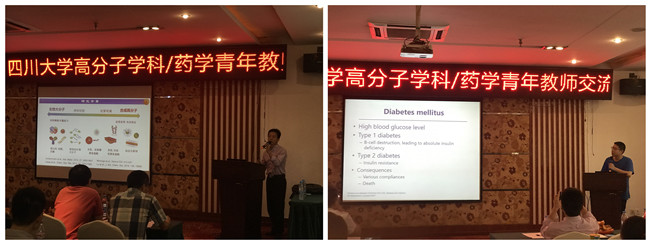 公司经理助理兼教学科研科科长陶全华老师、医用高分子材料及人工器官系副主任谢兴益教授、医用高分子材料及人工器官系副主任丁明明教授、华西药学院药剂系党支部书记高会乐教授出席沙龙。来自金沙js5588、华西药学院、高分子研究所、轻纺学院等单位约40余名青年教师参加了沙龙活动。