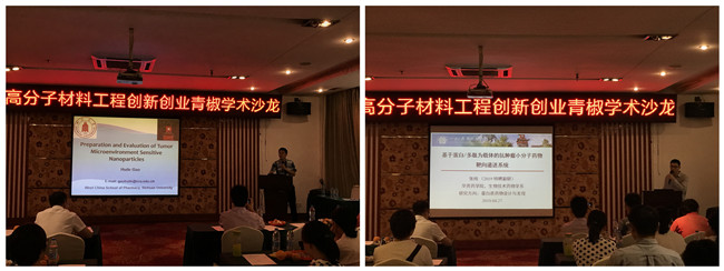 会上,谢兴益教授作为教师代表对沙龙的举行表示祝贺,并通过自身的切身体会讲解了增进学科间相互交流的重要性,对于科学研究的思路和项目的申请等大有裨益。交流报告分别由金沙js5588李乙文教授和华西药学院高会乐教授主持。华西药学院高会乐教授、张纯研究员和邓黎教授分别进行了《肿瘤微环境响应性形状变化纳米载体的设计与评价》、《基于蛋白/多肽为载体的抗肿瘤小分子药物靶向递送系统》和《视觉技术在仿制药开发中的应用》的报告。李乙文教授进行了精彩点评,指出报告既有尺寸设计,又有基于特种材料的研究,还有纺制药品一致性评价的视觉盛宴。金沙js5588李乙文和丁明明教授、赵伟锋和张凌副研究员分别进行了《人造黑色素材料的产品化研究》、《生物医用高分子多级自组装结构和功能调控》、《血液净化材料》和《A long-acting smart insulin delivery system》的精彩报告,高会乐教授对每个报告进行了一一点评,全场气氛热烈。