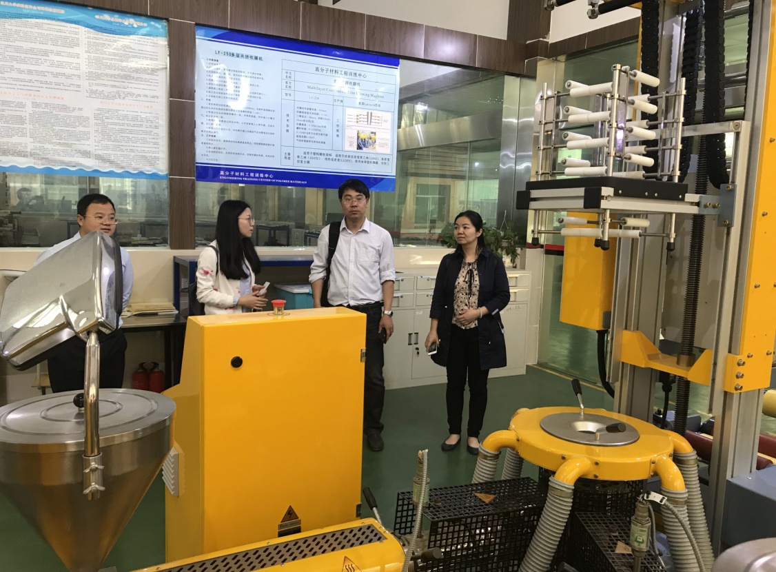 会后,高分子材料与工程专业实验室李晓瑜老师陪同来访的夏茹副经理等一行人参观了公司国家级材料科学与工程实验教学示范中心,以及高分子材料工程(创新)训练中心。