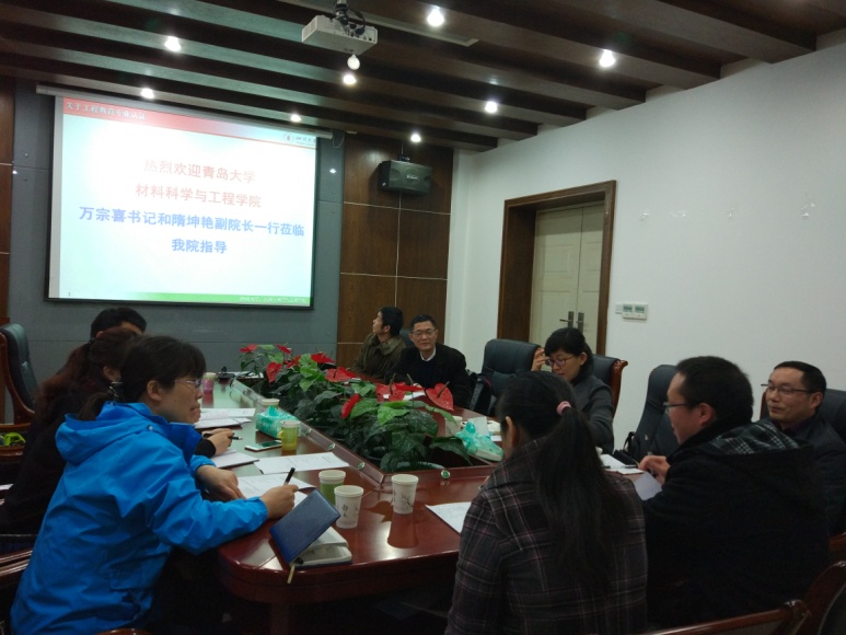 2017年3月22日,青岛大学材料科学与工程公司党委书记万宗喜教授、副经理隋坤艳教授等一行四人来公司访问交流。公司党委副书记李艳梅、副经理赵长生教授及相关系室负责人参加了此次交流会。