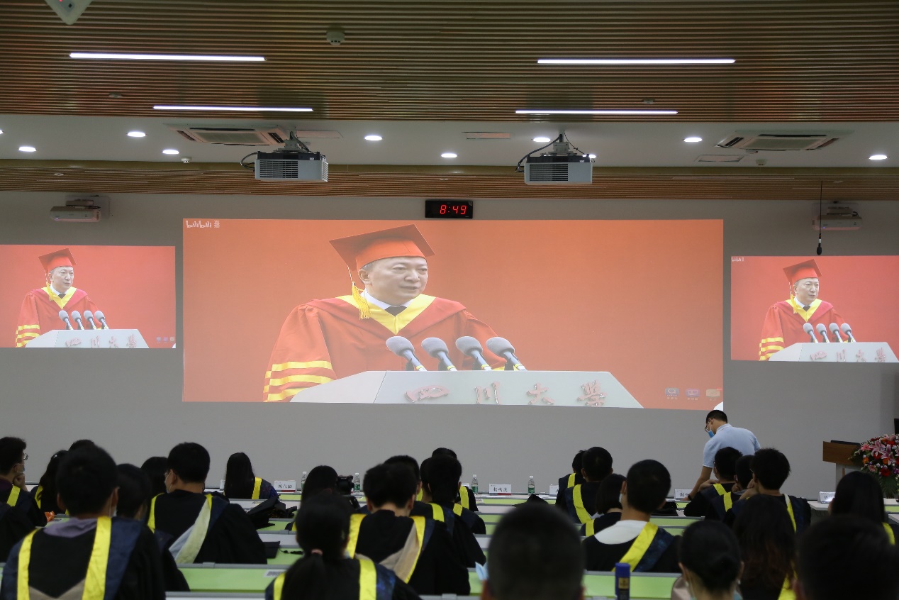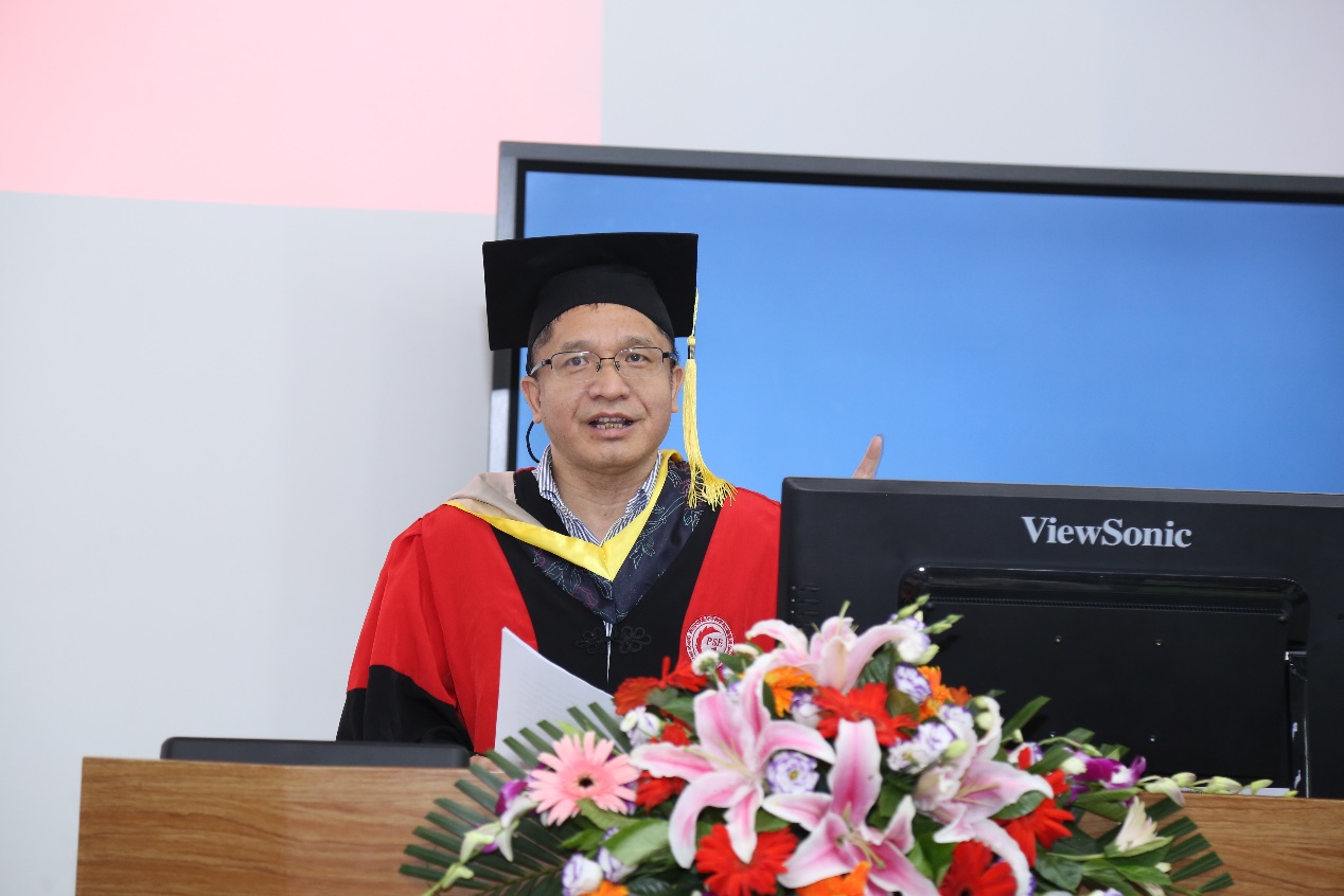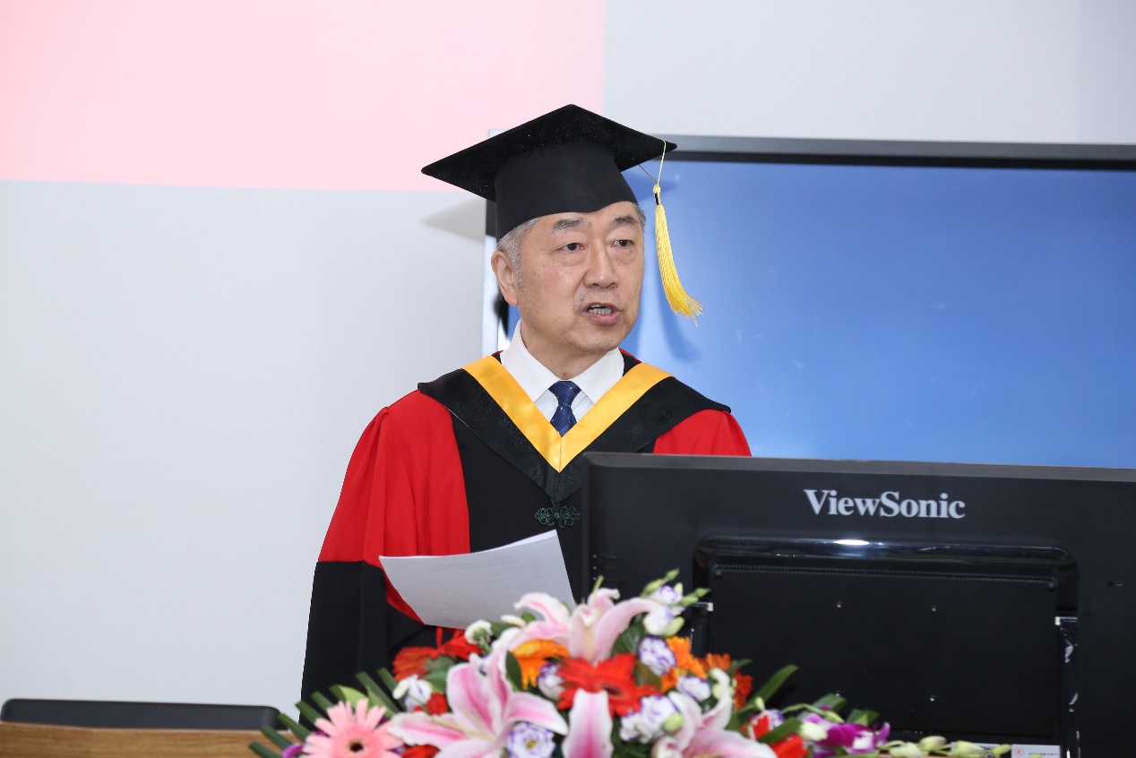 授位仪式上,经理傅强教授首先回顾了2020届毕业生在疫情防控形势下,师生共同努力,采取线上授课、指导毕业论文,线上线下答辩的方式,保质保量的完成了各项工作。他代表全院教师对2020届同学克服疫情影响并顺利毕业表示衷心的祝贺。离别之即,他对2020届毕业生提出了三点希望,希望同学们在未来生活工作中“不忘初心、爱岗敬业”,“保持定力,乐观向上”,“终身学习,勇于创新”,无论同学们走到哪里,获得成功或是经历坎坷,学院永远是温馨的家!