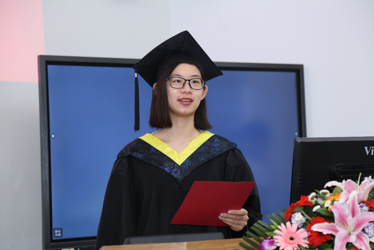 2020届毕业生代表、四川省优秀毕业生吕春燕同学分享了她在学院四年学习的感受,她感慨学院对员工无微不至的关心,感谢老师们悉心的指导和培养,展望未来,满怀信心。