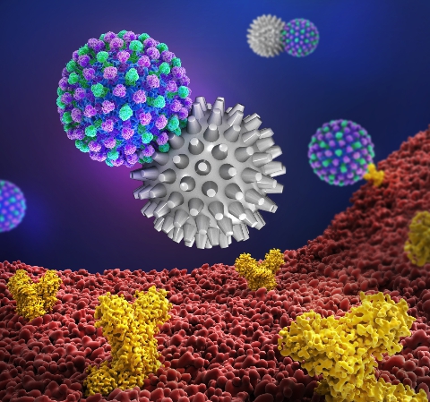 从形貌学上来看,流感病毒的病毒颗粒是一个约100 nm的纳米颗粒,在其表面有两个非常重要的蛋白:血液凝集素(HA)和神经氨酸酶(NA)。HA和唾液酸受体结合从而介导病毒入侵宿主细胞,NA可以切断HA和唾液酸受体的结合介导病毒释放。针对这两个蛋白在流感病毒表面形成的一个粗糙的纳米表面,该研究团队在前期的研究中开发出具有刺状结构的高分子基纳米抑制剂,可极大的提高病毒-抑制剂的相互作用(Nano Letters 2020, 20, 5367; Angew. Chem. Int. Ed. 2020, 59, 15532)。