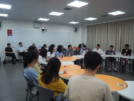 团支部书记范以诚同学首先代表班级全体同学向李董事长四年来对大家的关心和关怀表示诚挚的感谢。他和班长杨杰珲对同学们的深造情况和毕业去向作了汇报,目前班级深造率超过60%,就业率超过90%。