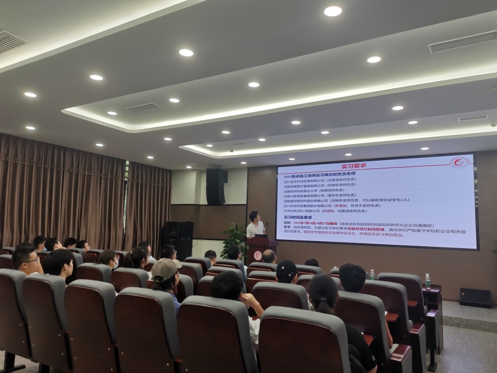 为保证公司2019级卓越工程师实习工作顺利开展,2022年6月27日下午,公司在学院科教楼209报告厅举行了2022年卓越工程师实习动员会。各实习基地指导老师和2019级参加卓越工程师项目的全体员工参加了此次会议,会议由卓越工程师项目负责人任世杰教授主持。