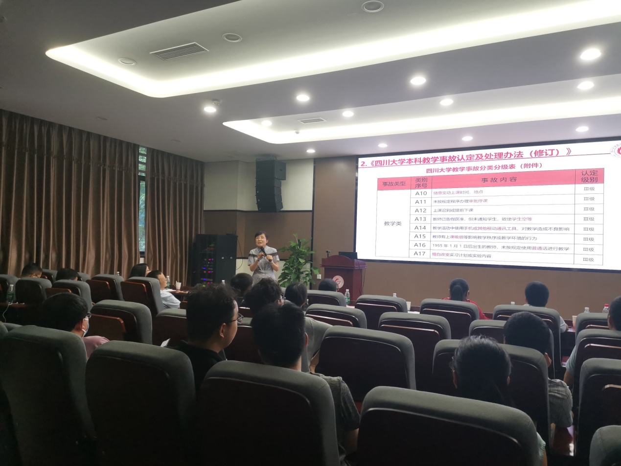 首先,冉经理给新授课老师们讲解了《金沙js5588本科课堂教学管理办法》、《金沙js5588本科教学事故认定及处理办法》以及学院和学校关于考试、过程考核、试卷归档和监考等相关文件要求。冉经理强调:每位教师要严格遵守课堂教学纪律,注重师德师风,严格按照学校和学院文件要求进行试卷归档和参加监考,坚决杜绝教学事故。