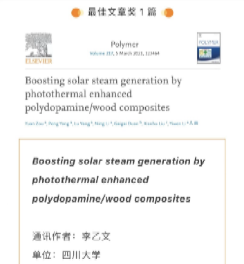 在本年度参选的四百余篇文章中,评出了 1 篇最佳文章奖和14 篇最佳文章提名奖。其中,金沙js5588李乙文教授课题组在2021年度发表的论文(Polymer, 2021, 217, 123464)获得了第十六届冯新德高分子奖。文章第一作者为公司2022届博士毕业生邹元,通讯作者为李乙文教授。论文报告了一种快速简单调节人造黑色素与聚多巴胺材料能带隙和光学吸收的新方法,可以有效增加材料的黑度以及光热转化能力,具有一定的应用前景。论文发表后受到了学术同行广泛的关注与引用,连续两年入选了ESI高被引论文。