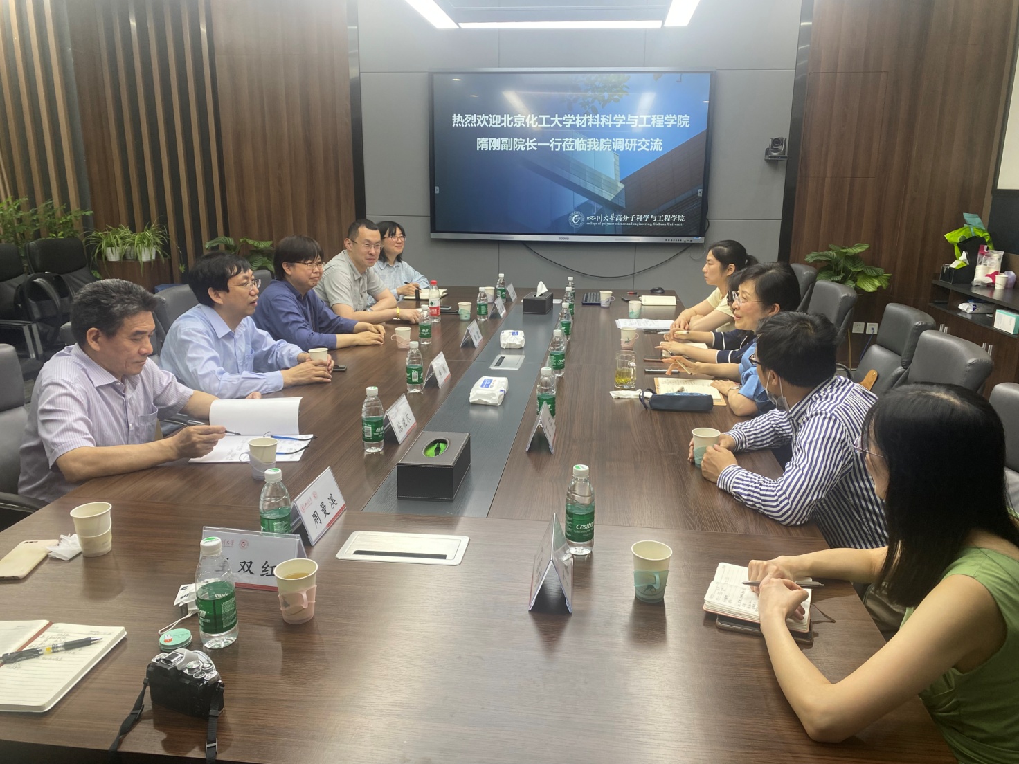 2023年5月15日,北京化工大学材料科学与工程学院副经理隋刚教授等一行七人来公司访问交流。公司副经理冉蓉教授、经理助理王宇研究员及相关系/室负责人参加了此次交流会。