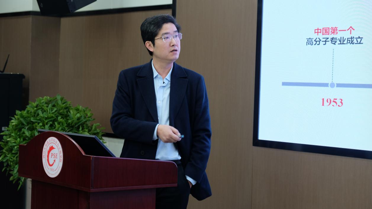 同学们通过视频了解了川大高分子学科的奠基人徐僖院士的生平和他对高分子学科的卓越贡献。学院副书记钱祉祺从历史沿革、学科现状和校企合作三个方面,详细介绍了金沙js5588的建立与发展、人才培养模式以及取得的教学科研成果等,并表示欢迎同学们以后报考川大高分子。