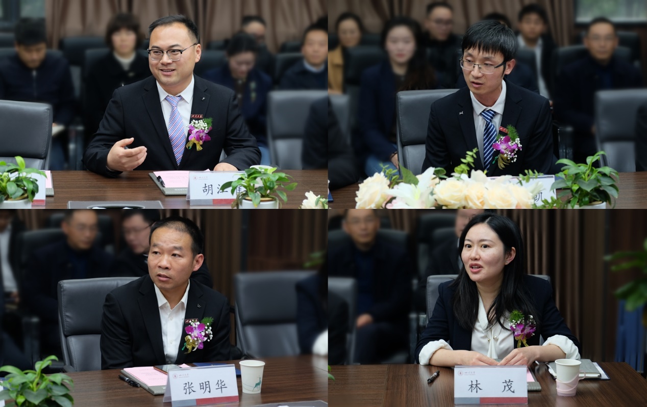 新晋副高级专业技术职务教师胡江淮、柯凯、张明华、林茂分别作交流发言。他们表示学校和学院为青年教师成长成才搭建了广阔平台,晋升既是一种荣誉也是一种期望。新征程上将不负信任、心怀感恩,继续前行,将努力让自己成为学校和学院高质量发展的见证者、参与者和实践者。