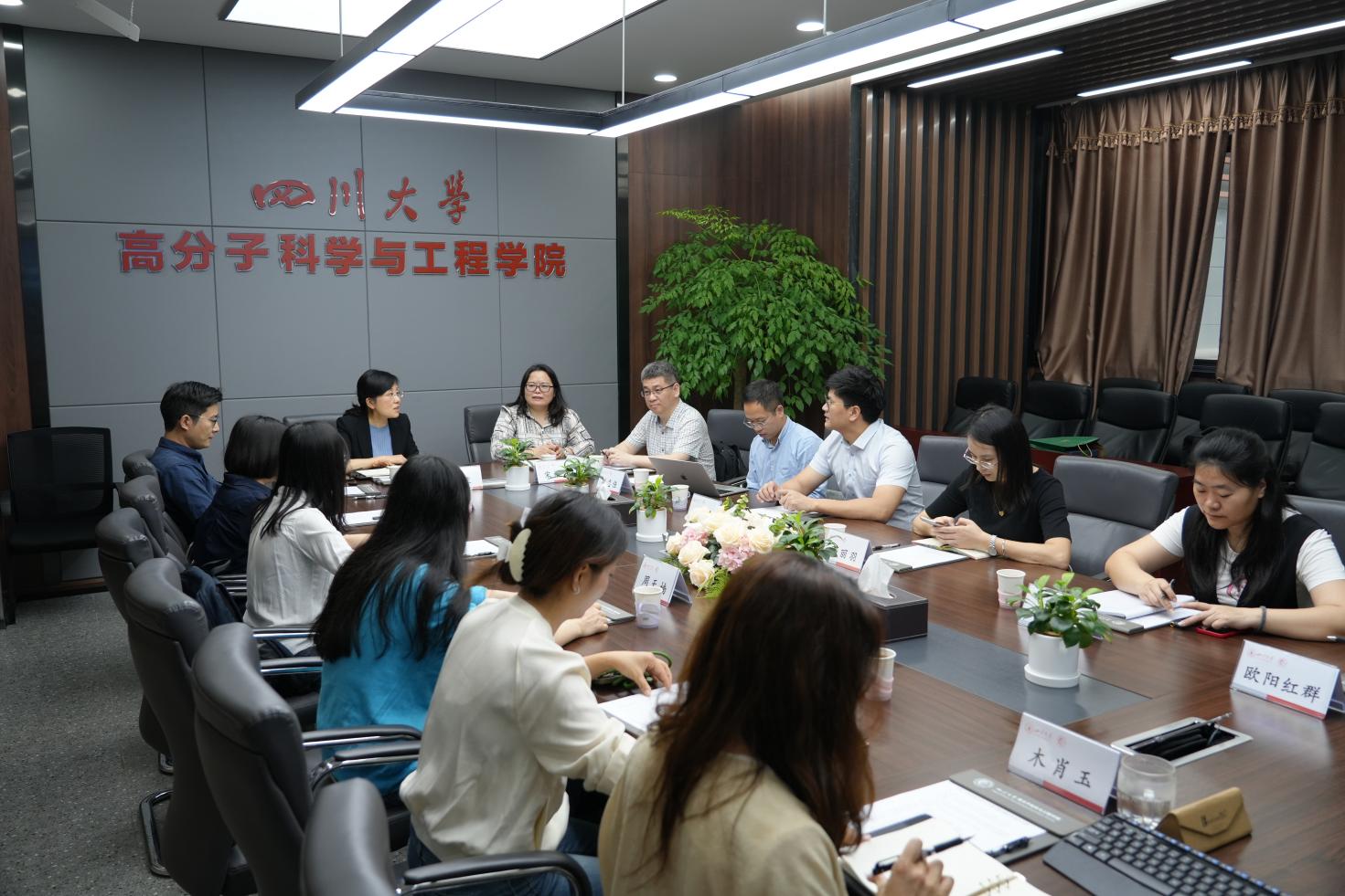 冉蓉代表学院对中山大学材料科学与工程学院宋树芹副经理一行的到访表示热烈欢迎,并对川大高分子历史沿革、学科现状、人才培养、团队队伍建设、科学研究等基本情况进行了详细介绍。宋树芹介绍了中山大学材料科学与工程公司近年来在人才培养、专业建设、团队队伍建设。随后与会人员就专业认证、人才培养、团队队伍建设、课程和教材建设等方面进行了深入的交流。