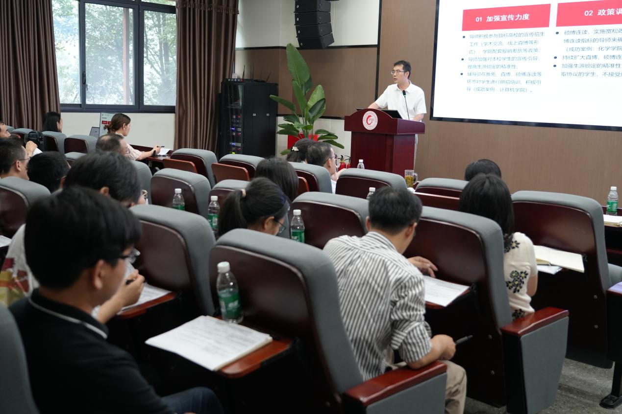 杨伟经理介绍了学院近五年的研究生生源情况、研究生科研成果产出情况和学位论文盲审情况,深入分析了当前存在的问题,并提出下一步工作思路与相应改进举措。一是通过加强招生宣传力度,持续推进夏令营活动,调整招生选拔政策来提升研究生生源质量;二是以落实导师职责、完善考核制度、建立激励机制等多举措压实公司产品责任体系。