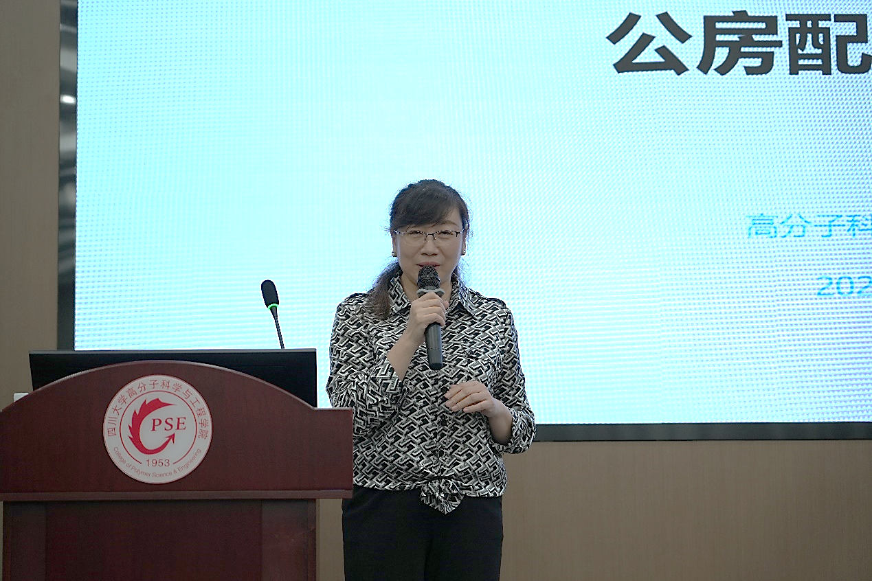 李艳梅副经理围绕学校及学院关于公房管理办法解读、先进材料大楼公房配置方案、先进材料科研大楼公房入驻原则、先进材料科研大楼建设准备等系列问题作重要阐述。