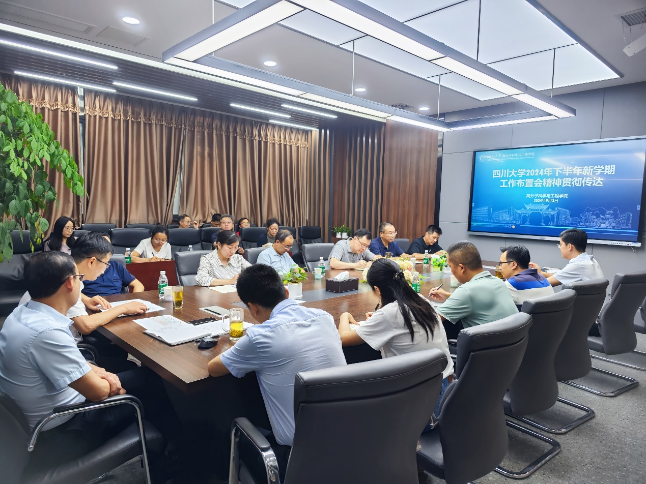 公司党委书记牟德富传达了学校新学期工作布置会会议精神并讲话。他指出,学校新学期各项工作始终围绕“高质量发展”和“深化改革”这两个关键词展开,学院要紧密结合党中央、国务院关于教育工作的重要部署和学校的重点工作,牢牢把握学科发展规律,抓好贯彻落实。
