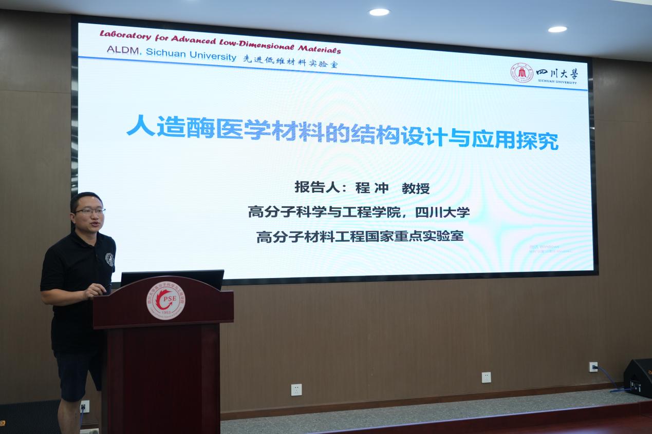 程冲做了题为“人造酶医学材料的结构设计与应用探究”的报告,并介绍了近期在生物医学材料领域的研究进展。他指出我国每年新增的器官缺损和肿瘤病例数量巨大,对新型生物材料的需求迫切,而目前临床上使用的生物材料大多为生物惰性材料,缺乏高级生命活性。研究团队提出构建具有高级生命活性的新一代医学材料,从被动的适应和调控转变为智能和主动的治疗范式。通过多学科交叉合作,成立了涵盖化学、材料科学、医学和计算机模拟等多个领域的研究团队,旨在构建有高级生命活性的高分子医学材料,实现材料与人体组织疾病等的更好匹配。研究团队研发了多种具有类酶生物活性的新概念材料,应用于组织工程、药物递送和再生医学等领域,相关研究不仅推动了该领域的科技进步,也为临床重大疾病的治疗提供了全新的解决方案,有望更好地适应和逆转疾病的进展,提高治疗效果。