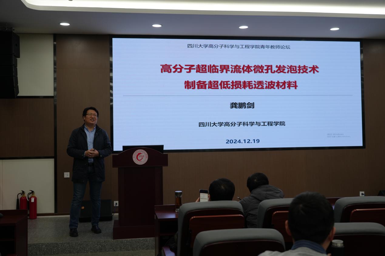 龚鹏剑作了题为“高分子超临界流体微孔发泡技术制备超低损耗透波材料”的报告。详细介绍了面向新一代信息通讯的高分子超临界流体微纳加工技术的研究进展,团队致力于开发超低损耗的高分子材料,通过改进材料结构设计,成功将损耗降低到万分位甚至更低。通过与通信领域龙头企业等的合作,团队不仅实现了实验室阶段的技术突破,还在工程化和产业化方面取得了显著进展,成功用于毫米波天线组件,大幅提升信号传输效率。