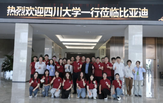 比亚迪股份有限公司是一家全球领先的新能源汽车及高新技术企业,公司业务横跨汽车、轨道交流、新能源和电子四大产业,是世界500强企业。在比亚迪股份有限公司深圳总部,师生参观了比亚迪技术展厅,了解了比亚迪旗下不同车型的研发技术与科技创新,深入探索了高分子材料在轻量化车身、动力电池隔膜、高性能复合材料等关键部件中的应用,近距离感受民族企业在新能源汽车与新材料领域的卓越成就。座谈会上,比亚迪集团招聘总监许云龙,电池事业群技术战略与创新业务部经理、公司03级本科员工朱燕,电池事业群CE与电极技术开发部经理、川大物理学院员工王良俊,电池事业群技术战略与创新业务部副经理崔玮等公司代表就企业历史渊源、公司发展规划、人才引进政策、深化校企合作等方面展开了深入交流。