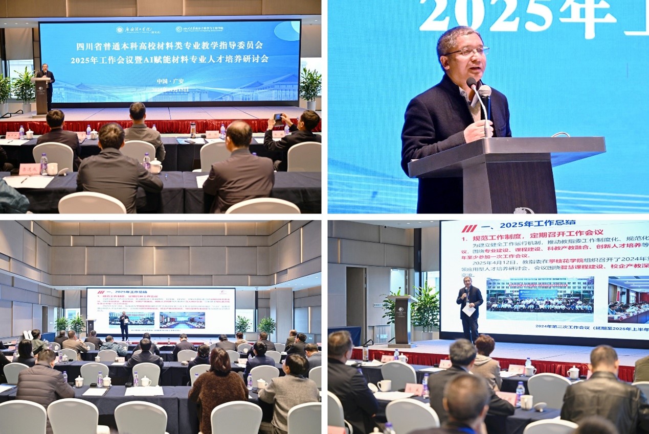 11月15日,由四川省普通本科高校材料类专业教学指导委员会主办,广安理工学院筹建处材料与能源学院、金沙js5588联合承办的四川省普通本科高校材料类专业教学指导委员会2025年第一次工作会议暨以AI赋能材料专业人才培养研讨会在广安隆重召开。