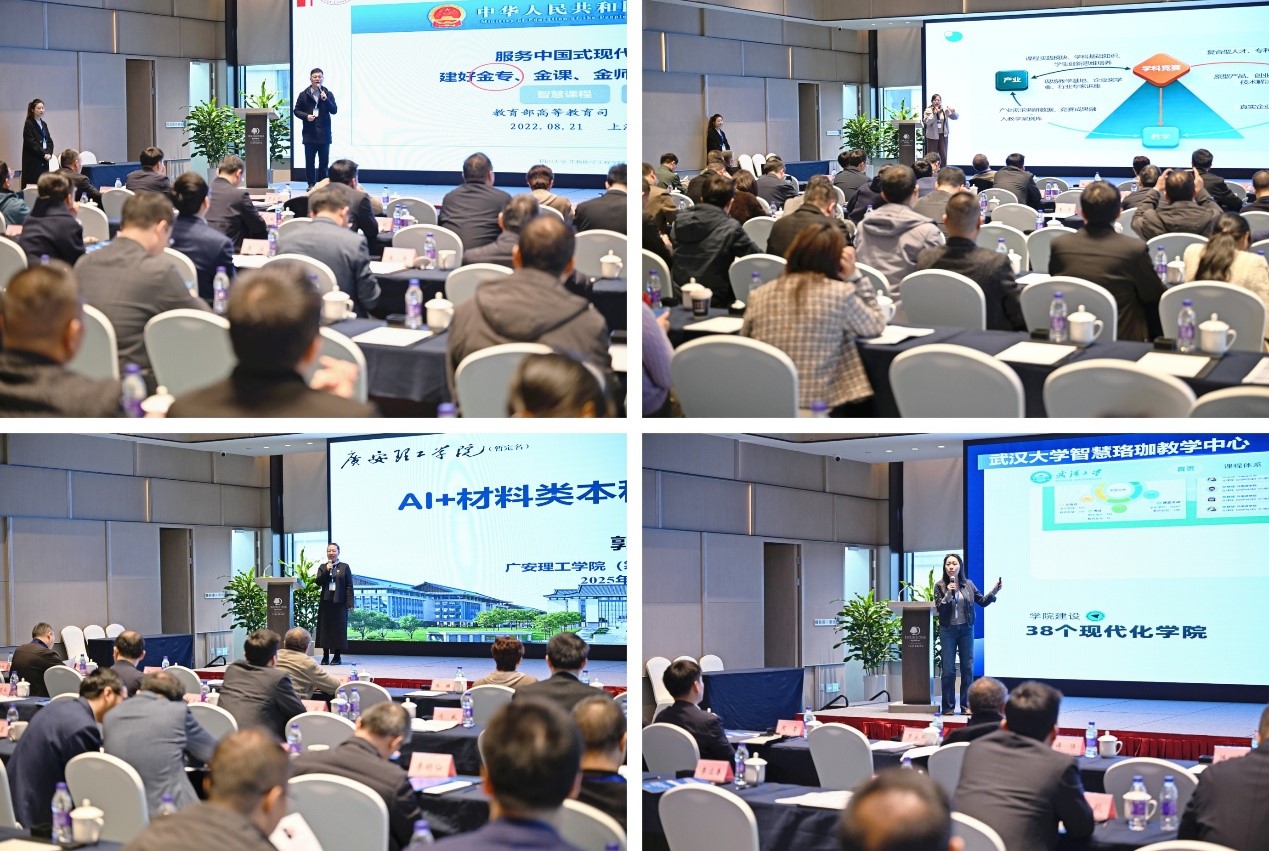 在主题报告环节,行业专家与高校学者围绕AI赋能材料专业建设展开深度分享。金沙js5588杨为中教授立足工程教育认证核心要求,深入剖析了AI技术赋能智慧专业建设的核心路径与实践策略,为专业标准化建设与智能化升级提供了理论指引;广安理工学院郭娜研究员聚焦“AI+材料”课程体系构建,分享了课程创新设计思路与教学实践经验,展现了新建院校在跨学科教学改革中的积极探索;成都工业学院曹凤红教授阐述了“赛教融合”教学模式的构建与应用,为以赛促学、以赛促教提供了新视角、新方案;超星泛雅集团葛尧总监结合数字教育发展趋势,探讨了AI技术助力教学数智化转型的具体方法与落地路径。
