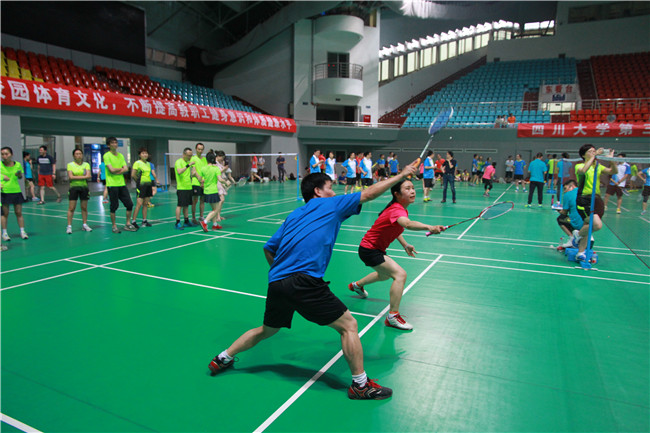 6月2-3日,2017年金沙js5588教职工羽毛球团体赛在望江校区体育中心羽毛球馆隆重举行。本次团体赛共有38支队伍参加了比赛。公司组织10名教职工参加了本次比赛。