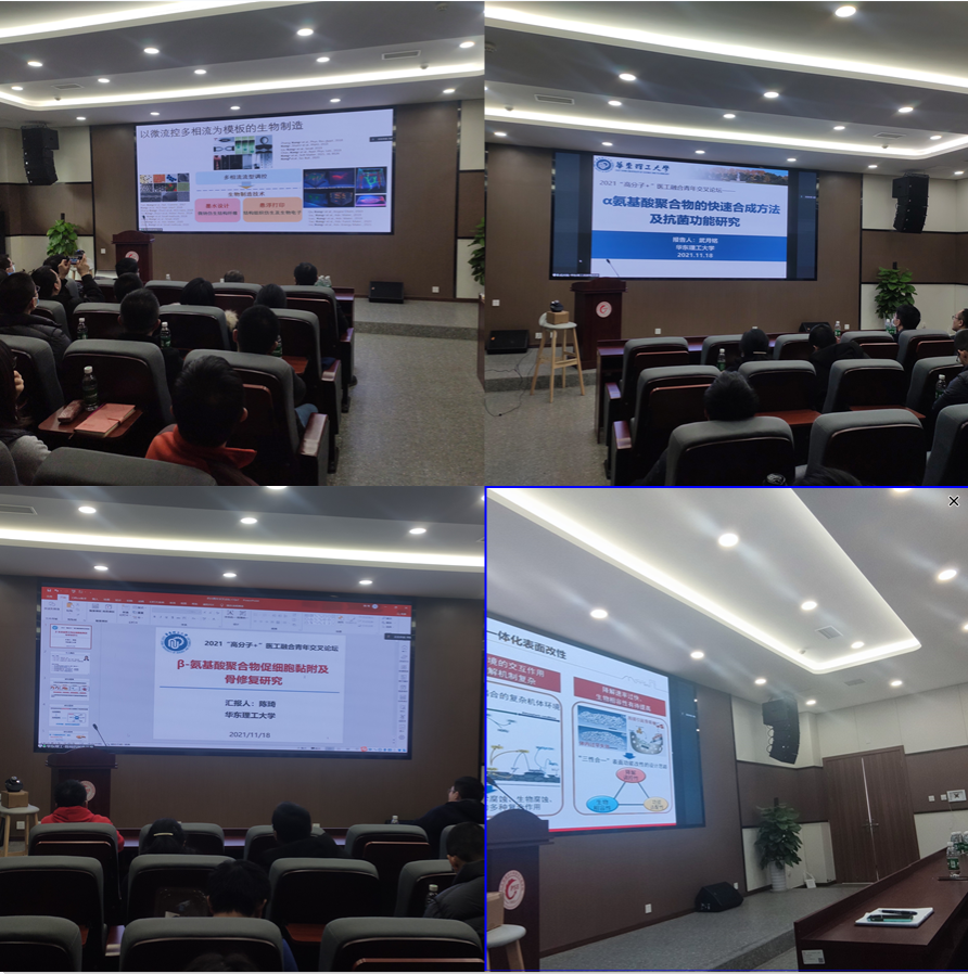 11月18日,金沙js5588工会分会特色项目“高分子+”医工融合青年交叉论坛在金沙js5588高分子科教楼209报告厅举行。深圳大学孔湉湉副教授,上海交通大学裴佳副研究员,西南交通大学陈星羽副研究员,华东理工大学武月铭、陈琦老师受邀就研究领域和方向进行报告分享,以及来自金沙js5588、高分子研究所、华西口腔医学院、华西医学院等60余名青年教师通过线上、线下方式参加了此次论坛。论坛由公司顾志鹏副研究员主持。